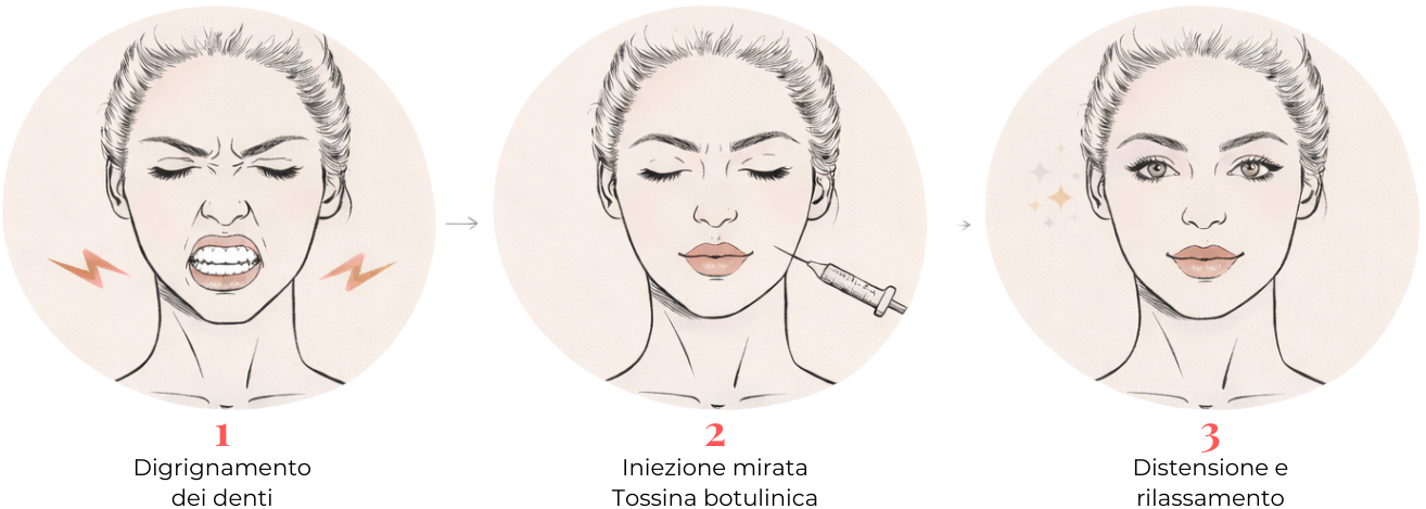 Il Botox per il bruxismo offre un approccio mirato per alleggerire la zona, favorendo una sensazione di rilassamento e comfort.