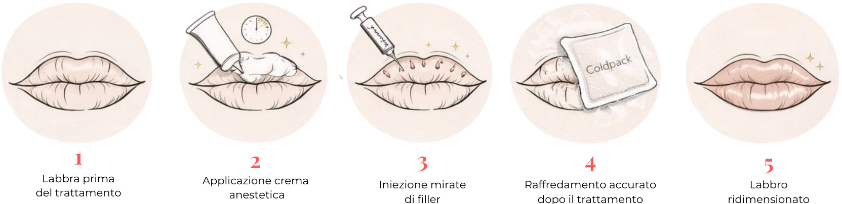 Nel corso della visita viene inoltre definito il numero di iniezioni necessarie per sciogliere il filler, che varia in base alla posizione del prodotto e alla quantità precedentemente iniettata. Prima di iniziare, il medico applica una crema anestetica locale sulle labbra o sull’area interessata. Successivamente, l’enzima Hyalase viene somministrato tramite micro-iniezioni mirate nella zona in cui è presente il filler.