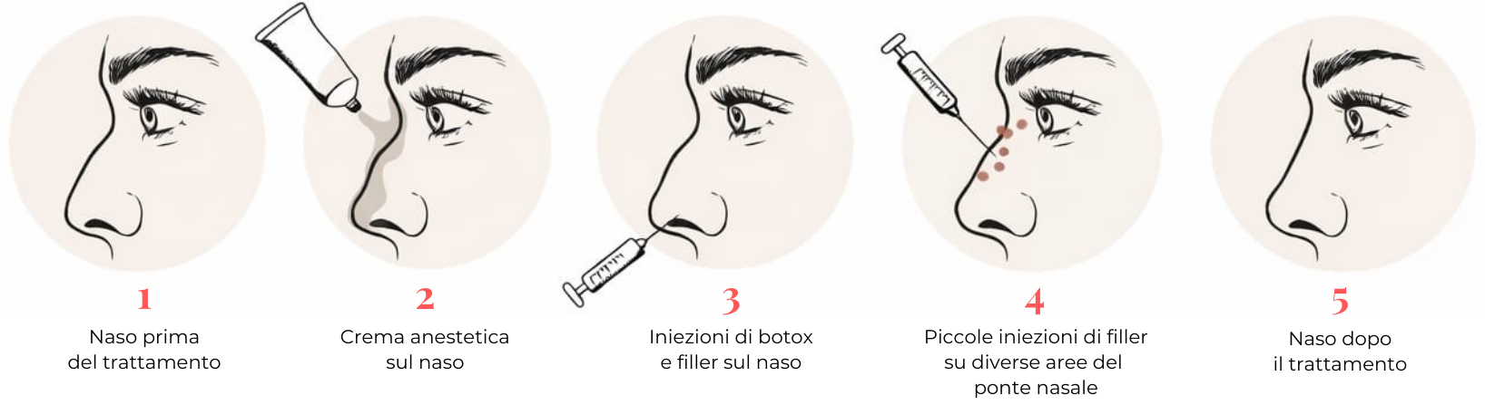 All’inizio del percorso è previsto un colloquio con il medico estetico, durante il quale vengono valutati obiettivi, aspettative e fattibilità del risultato desiderato. In questa fase il medico verifica anche l’eventuale presenza di precedenti interventi chirurgici al naso: in tal caso, il trattamento con filler nasale non è indicato. Successivamente viene applicata una crema anestetica sull’area interessata, che deve agire per circa 10 minuti per aumentare il comfort della seduta.
