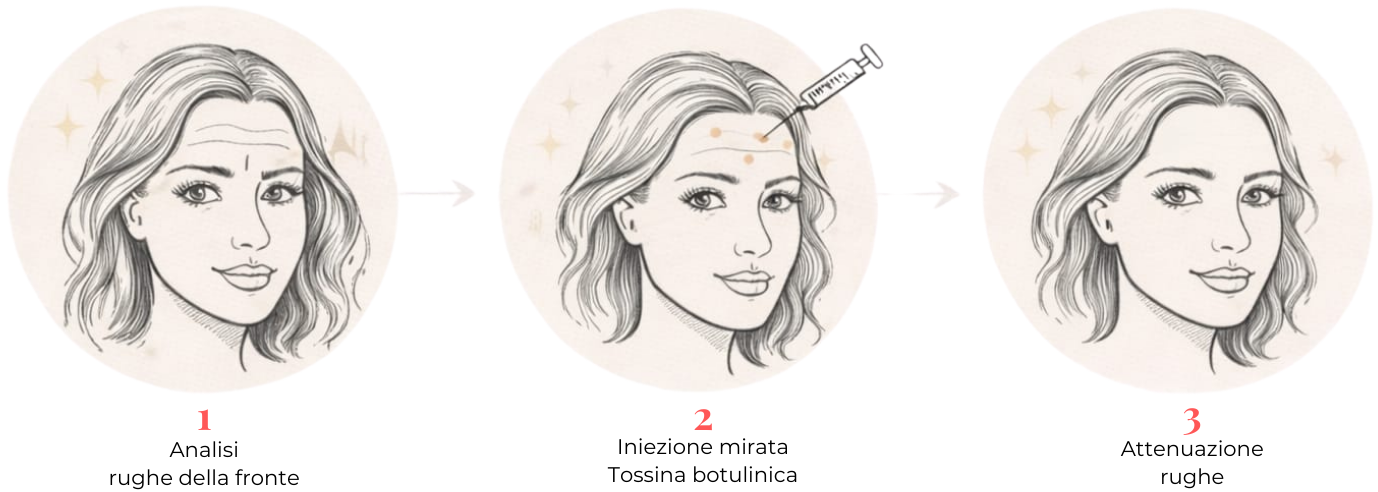 Il Botox aiuta a distendere le rughe orizzontali, regalando un aspetto più riposato e uniforme senza perdere naturalezza.